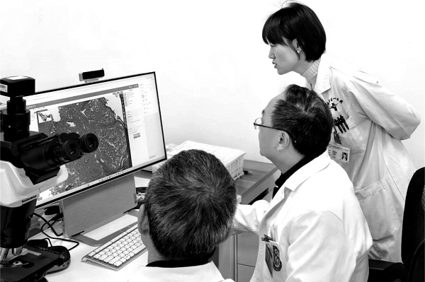 華西龍泉醫(yī)院病理科特聘專家張尚福教授(中)為甘孜縣患者開展遠程會診。(資料圖)