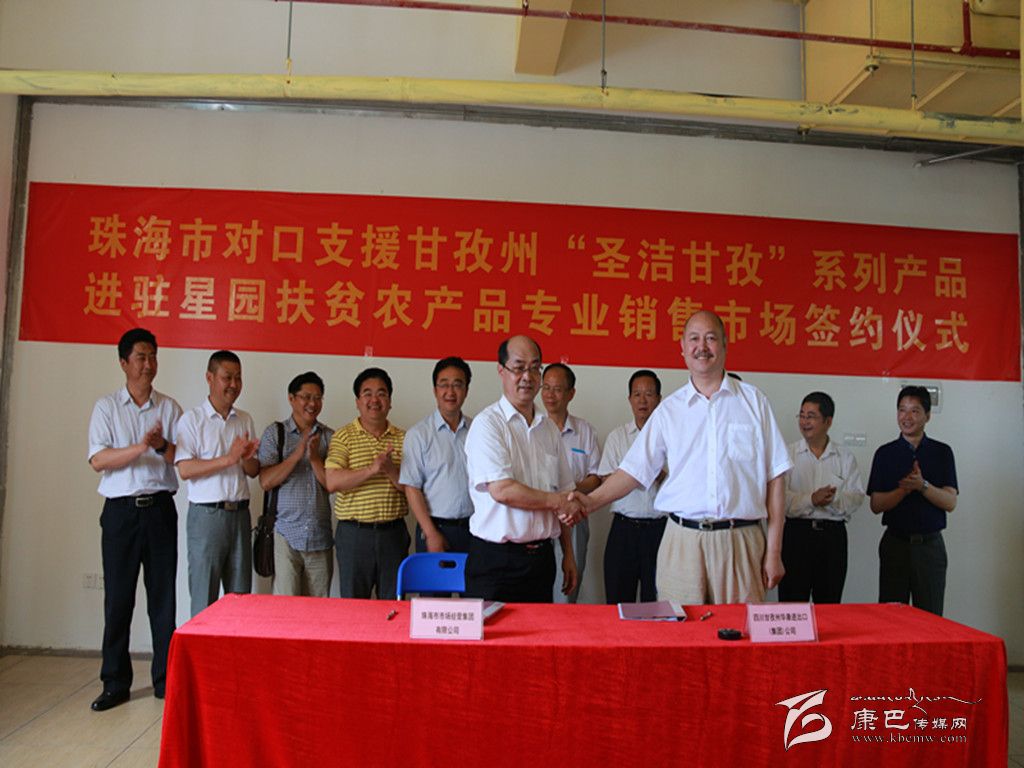 珠海市為了更好幫助甘孜州推銷特色農(nóng)副產(chǎn)品,還專門在位于繁華市區(qū)的星園市場開辟了珠海市對口幫扶地區(qū)特優(yōu)農(nóng)副產(chǎn)品專業(yè)銷售市場,并設(shè)立了近400平方米的“圣潔甘孜”特色產(chǎn)品專銷區(qū)。在參觀了甘孜州產(chǎn)品專區(qū)后,我州考察團(tuán)領(lǐng)導(dǎo)與珠海市相關(guān)領(lǐng)導(dǎo)共同見證了珠海市對口支援甘孜州“圣潔甘孜”系列產(chǎn)品進(jìn)駐星園扶貧農(nóng)產(chǎn)品專業(yè)銷售市場簽約儀式,我州知名民營企業(yè)華康進(jìn)出口(集團(tuán))公司正式成為進(jìn)駐星園扶貧農(nóng)產(chǎn)品專業(yè)銷售市場的第一家州內(nèi)企業(yè)。