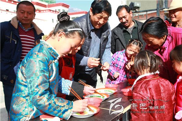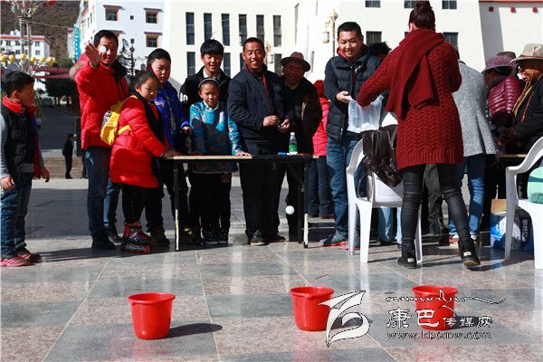 據(jù)了解,從大年初三開始,在香巴拉廣場上,除了鍋莊表演外,最吸引人的就是新春游園活動。大年初五早上,在歡快的音樂聲中,群眾成群結隊的趕往香巴拉休閑廣場參加新春游園活動。這次的游園活動除了夾珠子、投飛鏢等項目外,還有筷子入瓶、彈球入杯等內(nèi)容?;顒蝇F(xiàn)場,擁色帶著侄女甜甜早早就開始排隊,她們已經(jīng)玩了好幾個游戲,掙了好幾張兌獎卷。她告訴筆者,游園活動的獎品雖然不多,但新年能拿到禮物,心里還是樂滋滋的,更為重要的是能和大家一起熱熱鬧鬧過個年。