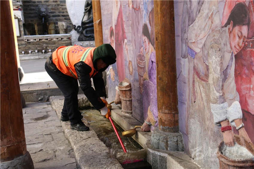 每逢節(jié)假日,是環(huán)衛(wèi)工人最忙最累的時候。2月5日下午,康定強盛公司清洗組組長楊曉康帶著全組工作人員來到康定市水井子,打掃整個水井子的環(huán)境衛(wèi)生?!俺跻弧畵岊^水’是多年來康定市民的過年習(xí)俗,我們現(xiàn)在把這里打掃干凈,讓市民們在‘搶頭水’時有干凈整潔的環(huán)境?!睏顣钥蹈嬖V記者。