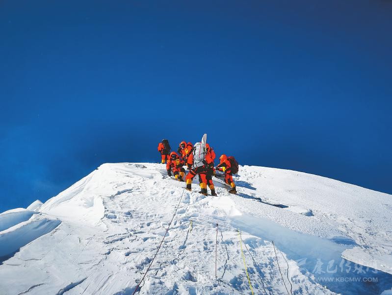 據(jù)新華社珠峰大本營5月27日電 27日11時(shí)整,中國2020珠峰高程測(cè)量登山隊(duì)8名隊(duì)員登頂“地球之巔”珠穆朗瑪峰,為珠峰“量身高”。