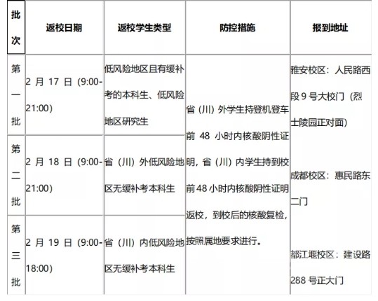 所有學(xué)生不得提前返校,均須遵照學(xué)校通知分批返校。具體安排如下: