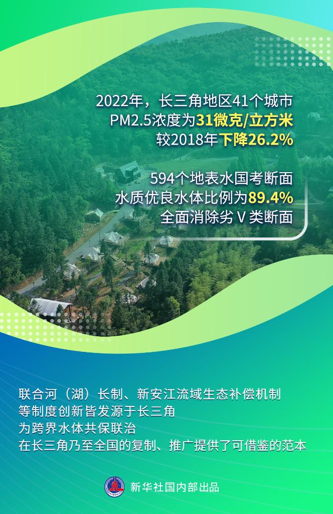 2022年,長三角地區(qū)41個(gè)城市PM2.5濃度為31微克/立方米,較2018年下降26.2%。594個(gè)地表水國考斷面水質(zhì)優(yōu)良水體比例為89.4%,全面消除劣Ⅴ類斷面。