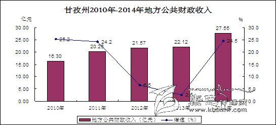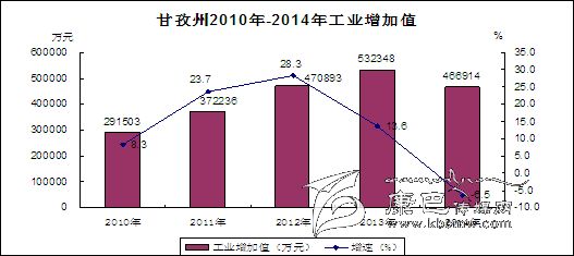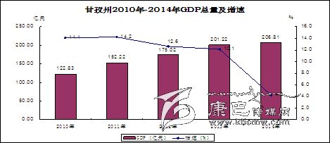 2014年,全州地區(qū)生產總值(GDP)達到206.81億元,按可比價格計算較2013年增長4.2%。其中,第一產業(yè)增加值51.48億元,增長4.6%;第二產業(yè)增加值77.20億元,增長2.4%;第三產業(yè)增加值78.13億元,增長6%。三次產業(yè)結構為24.9:37.3:37.8。