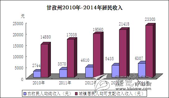 城鄉(xiāng)居民收入持續(xù)較快增長。2014年,城鎮(zhèn)居民人均可支配收入23303元,增長8.8%;人均生活消費性支出16127元,增長8.1%;城鎮(zhèn)居民恩格爾系數(shù)為42.4%,同比下降0.4個百分點。農牧民人均純收入6307元,增長16 %。全年生活消費支出人平達4515元,增長17.2%;農村居民恩格爾系數(shù)為58.9%;較上年下降1.5個百分點。