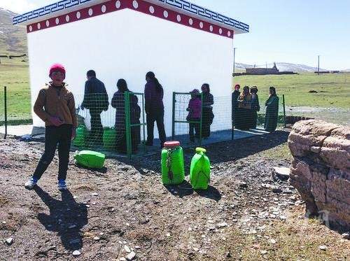 7月24日,在格孟鄉(xiāng)格貢村,記者在一牧民定居點(diǎn)看到,一道半人高的綠色柵欄保護(hù)著一處泵房免受牲畜侵?jǐn)_,里面就是剛投入使用的一口包蟲病防治井。藏族群眾擁加說,出水那天,周圍的大人小孩都拿著水桶去接水,而且這井冬天也能用。