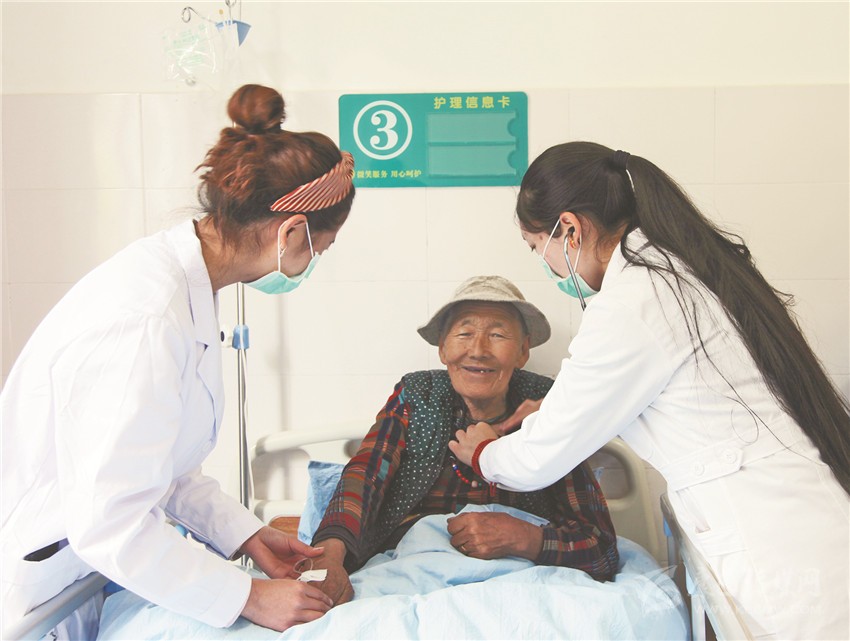 “現(xiàn)在我們看病簡(jiǎn)直太方便了,鄉(xiāng)衛(wèi)生院的環(huán)境條件一點(diǎn)不比縣上差,既有醫(yī)生也有護(hù)士,服務(wù)態(tài)度非常好,無(wú)論是在門(mén)診治療還是住院治療,結(jié)賬就能馬上報(bào)銷(xiāo)。哪像以前,小病拖、大病扛,實(shí)在拖不過(guò)去,才到縣醫(yī)院或甘孜縣醫(yī)院去治,人吃虧不說(shuō),還要花很多冤枉錢(qián)?!?0歲的老人志瑪對(duì)樂(lè)安鄉(xiāng)衛(wèi)生院的設(shè)施設(shè)備和醫(yī)療質(zhì)量贊不絕口。