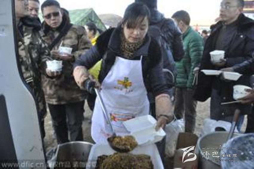 本網(wǎng)綜合報(bào)道 康定6.3級地震發(fā)生后,在塔公鎮(zhèn)的一處安置點(diǎn),一直有一家飯店為眾人免費(fèi)派送盒飯。