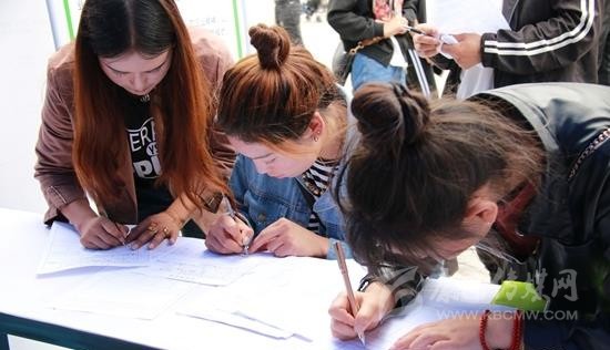 在現(xiàn)場,一名手拿“得榮縣人社局”牌子的年輕人引起了記者的注意?!拔沂堑脴s縣人才交流和就業(yè)服務局的一名工作人員,這次我們縣上有20余人報名,大都是剛畢業(yè)的學生,但由于路途遙遠等原因,今天只來了12人,我是來給他們帶隊的,希望功夫不負有心人,他們都能應聘到自己心儀的崗位?!边@名叫徐懿的年輕人告訴記者。