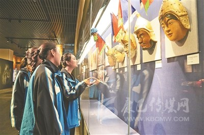 學生們在博物館參觀面具展。