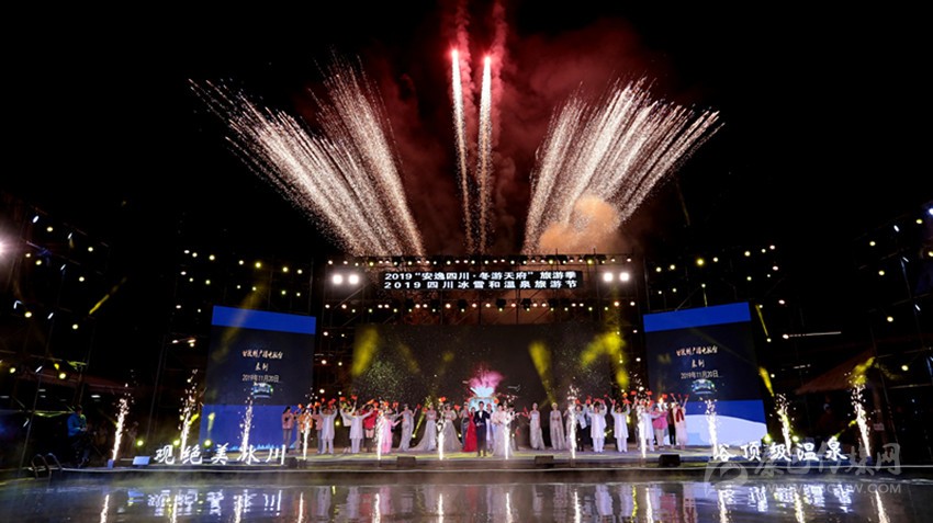 20時(shí)許,省委常委、宣傳部部長甘霖宣布:“2019‘安逸四川·冬游天府’旅游季啟動(dòng)儀式暨2019四川冰雪和溫泉旅游節(jié)開幕!”全場掌聲雷動(dòng),火樹銀花騰空。