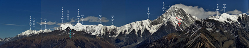 王志偉完成的貢嘎西坡17座雪峰的標注。