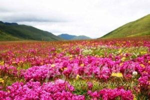 木雅圣地景區(qū)坐落于康定折多山西側的“木雅辛康”,是一座以民俗風情與自然風光相結合的,以體現(xiàn)藏族木雅文化為主題的專題旅游區(qū)。擁有雪山、草原、花海、河流、湖泊和木雅藏族民俗文化等眾多旅游景觀,共有5個主要景點,“花海尋蹤”是當年木雅公主很愛游玩之地,也是整個景區(qū)花開得很早很茂盛的地方?!拌笠羲透!笔悄狙诺貐^(qū)享有盛名的藏傳佛教寺廟?!疤旖缒粮琛笔悄狙艊鴤鹘y(tǒng)的冬季放牧之地,這里牧草極為豐富?!胺鹩幽狙拧笔且粋€用經幡制作而成的釋迦牟尼佛像?!叭悍鍑痢笔亲o衛(wèi)木雅國的一道天然屏障。